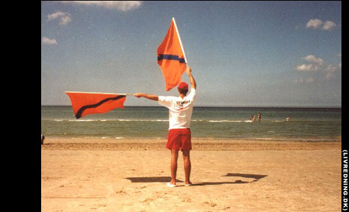 signaleres ved at holde det ene flag vandret, mens det andet bevæges i små ivrige cirkler over hovedet