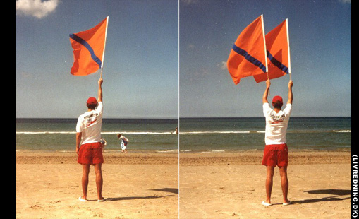 Ét flag holdes over hovedet som vist til venstre